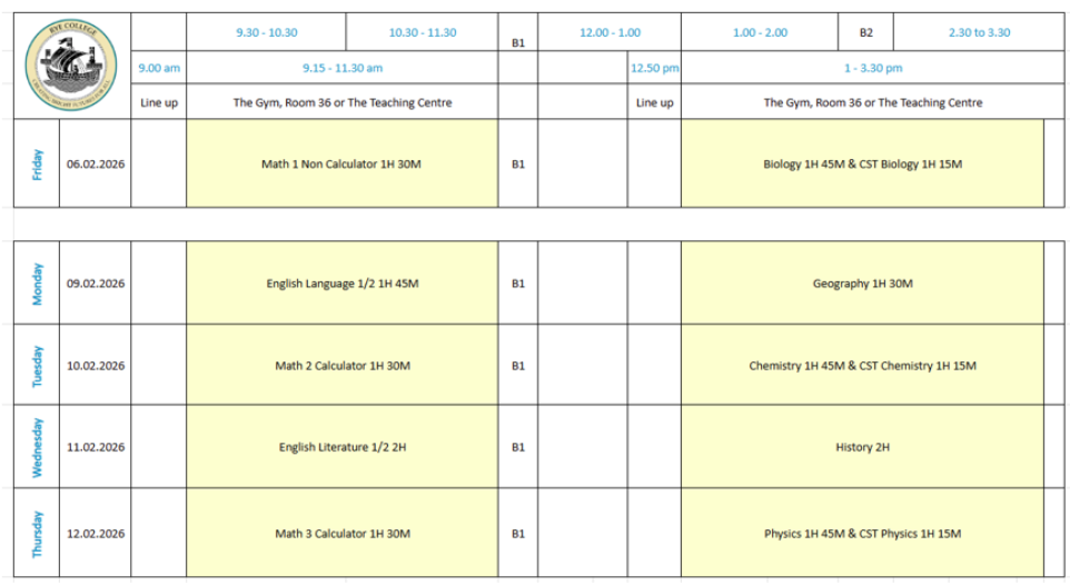 | Pre-Public Examinations Series 2 | Friday, 6th February - Thursday, 12th February 2026 |