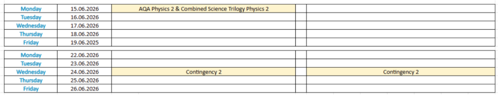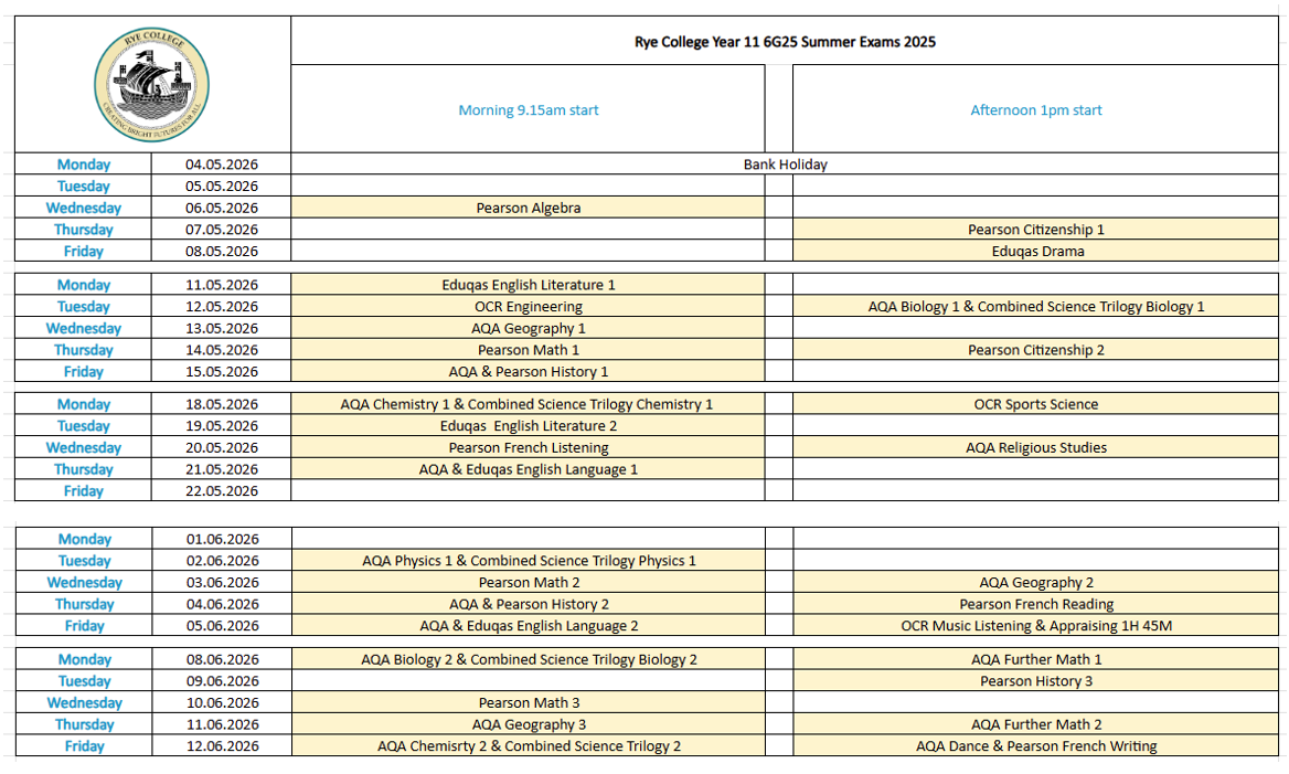 Y11 6G26 Summer Exams 2026