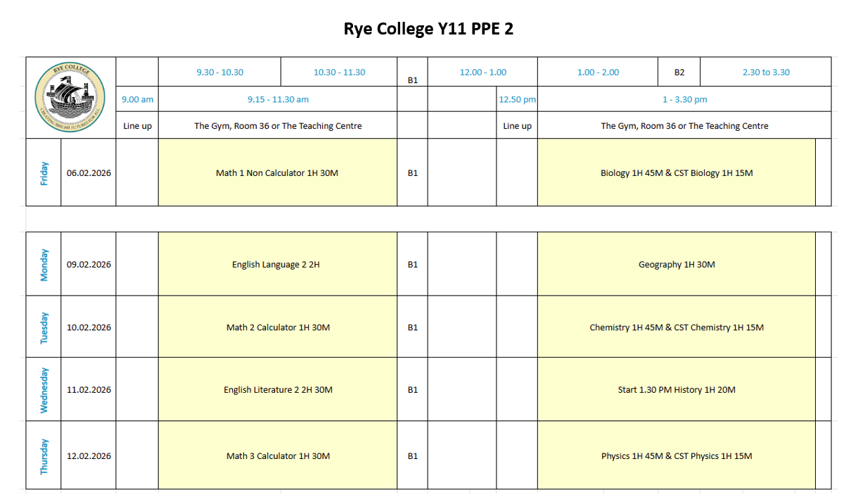 Year 11 February PPE 2 Timetable