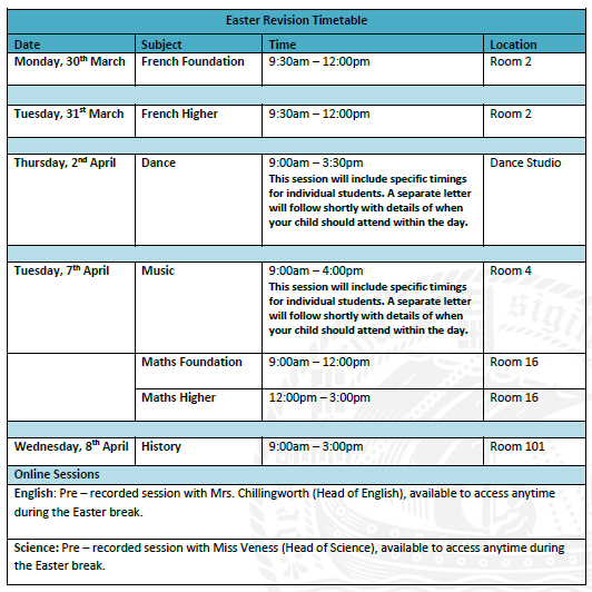 Revision Clubs and Easter Holiday Revision Timetables